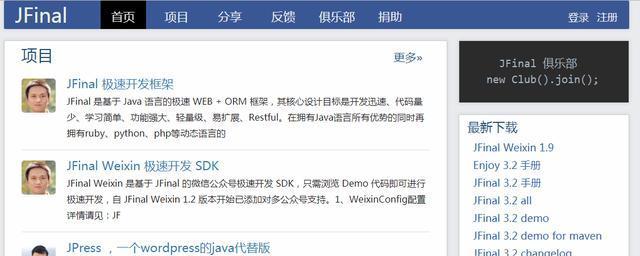 JFinal 是基于 Java 语言的极速 WEB + ORM 框架,其核心设计目标是开发迅速、代码量少、学习简单、功能强大、轻量级、易扩展、Restful。在拥有Java语言所有优势的同时再拥有ruby、python、php等动态语言的开发效率!为您节约更多时间,去陪恋人、家人和朋友 :)